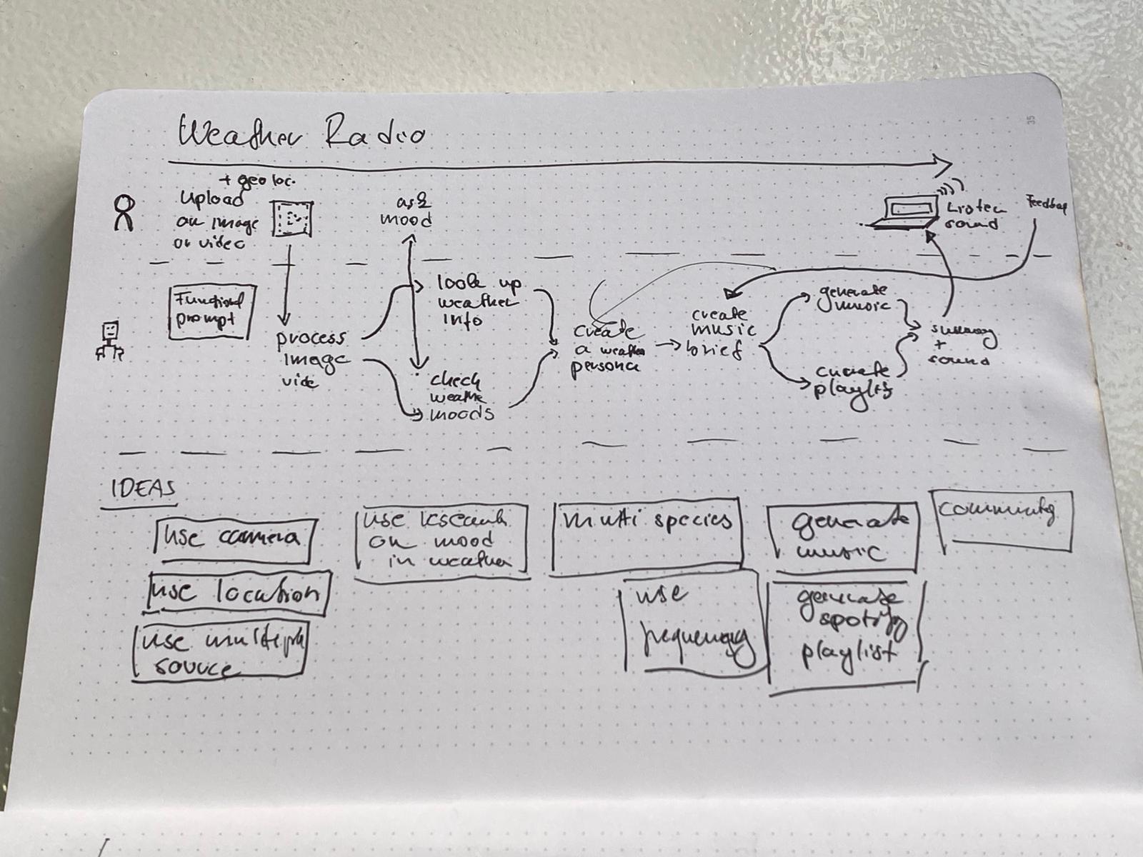 For Extended Intelligences II my group initially proposed creating a weather radio. This radio would use your geolocation to detect the surrounding environment. Conditions such as rain sunshine wind snow or overcast would be identified and used to curate a music playlist. The playlist was intended to function as a mood stabilizer by aligning your emotional state with the environment rather than opposing it. As the project developed and we considered our available resources technical limitations and experience with the OpenAI Agent Builder the direction shifted. Instead of relying only on weather data we began to incorporate immediate localized environmental sensing. We introduced an LDR sensor to measure the ambient light level in the room. Higher values indicated brighter conditions while lower values indicated darker spaces. This data was captured using a Raspberry Pi Pico and MicroPython. Using OpenAI’s Agent Builder we first attempted to connect curated playlists through Zapier. Due to technical difficulties integrating Zapier as an API within the agent workflow we decided to rely entirely on OpenAI agents.